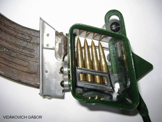 töltényrakaszban tárak vannak, 3 db betét nélküli, egyben pedig a tártöltő kerül elhelyezésre.