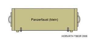 4 db páncélököl, 4 db gyújtó és 4 db detonátor egy faládában, a fedélen fekete "Panzerfaust (klein)" vagy "F. Patr. 1" felirat áll,